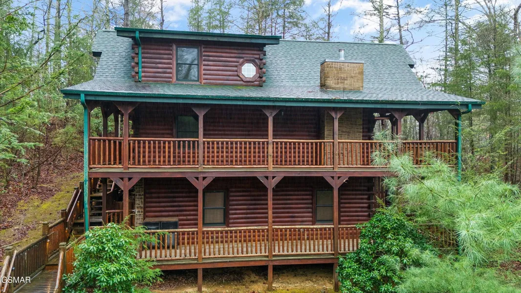 Welcome to Hemlock Manor-a well-maintained, income-producing log cabin nestled in the heart of the Smoky Mountains. Located just minutes from both downtown Gatlinburg and Pigeon Forge, this fully furnished 3-bedroom, 3-bath cabin offers the ideal blend of privacy, space, and convenience. Spread out across three levels, each floor of the home includes a bedroom and a full bathroom, giving guests a private retreat no matter where they stay. The oversized loft-style primary suite features a king bed, private jetted tub, cozy fireplace, and beautiful wood finishes that give that classic cabin feel. This cabin comfortably sleeps 10 guests, with queen beds in the lower bedrooms and two sleeper sofas-one in the main living room and one in the spacious game room. The game room is a standout feature for families and groups, boasting a pool table, air hockey, and additional lounging space with a flat-screen TV. The main living area has soaring cathedral ceilings and a wall of windows that fill the space with natural light, along with a gas fireplace for those chilly mountain evenings. The kitchen is fully equipped, and the open dining area makes entertaining a breeze. Outside, two expansive covered decks offer wooded views, a porch swing, rocking chairs, and a private hot tub-exactly the kind of amenities that keep guests coming back year after year. Hemlock Manor sits in a high-demand area for both seasonal and year-round rentals. Investors will appreciate the proximity to major attractions while still offering guests a true mountain escape. Whether you're looking to expand your portfolio or purchase a second home, Hemlock Manor checks all the boxes. This property is turn-key and rental-ready.