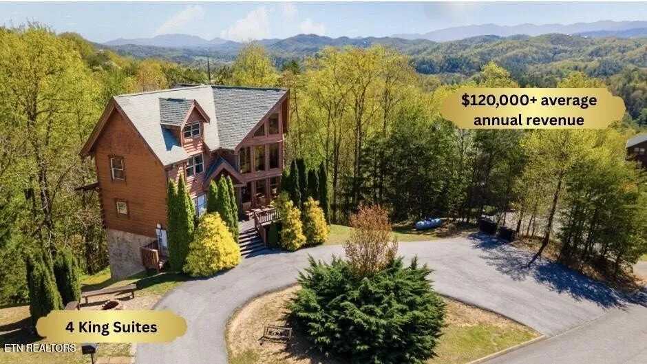 4 King Suites | Indoor Heated Pool | Above-Market ROI Opportunity in the Smokies | Breathtaking Mountain Views | Incredible Location Showcasing expansive mountain views, a private indoor heated pool, and four luxurious king suites, this multi-level cabin accommodates up to 14 guests in comfort-perfect for unforgettable family vacations or as a high-performing short-term rental. At the current listing price, Swim on a Whim is delivering an above-market 12% return on investment, offering buyers both strong cash flow and long-term equity growth. This cabin generates an average rental history of $120,000 annually, with $110,000 already booked for 2025-and it's not even October, so much more is yet to come. Currently self-managed and marketed exclusively on Airbnb and Vrbo with outstanding guest ratings, there's tremendous potential to increase revenue with a property management company, additional booking platforms, expanded marketing, and more. OFFERING FREE APPRAISAL OR DISCOUNTED RATE WITH PREFERRED LENDER Perfectly positioned, the cabin is just minutes from Dollywood, Pigeon Forge, Gatlinburg, The Island, Anakeesta, Ripley's Aquarium, Soaky Mountain, Margaritaville, and the Great Smoky Mountains National Park. Guests enjoy quick access to top attractions while still savoring the peace and privacy of a true mountain getaway. Inside, the main-level owner's suite offers breathtaking views, a warm gas stone fireplace, and a soothing whirlpool tub. The living room features another fireplace and impressive floor-to-ceiling windows that flood the space with natural light. Outside, enjoy the covered porch with a hot tub, a welcoming front porch with ample seating, and a firepit area with a charcoal grill-all set against a backdrop of stunning mountain scenery. A U-shaped driveway with space for 10-12 vehicles ensures stress-free arrivals, and multiple storage sheds offer added convenience. Upstairs, two bedrooms share a Jack & Jill bath, along with a cozy sitting area and a mountain-view desk nook-ideal for remote work or quiet reading. One upstairs suite also boasts its own whirlpool tub for added comfort. The lower level is all about fun and relaxation, with a large game room featuring a pool table, foosball, arcade games, and more-plus a bonus suite with whirlpool tub and patio access. Steps away, the indoor heated pool invites you to unwind with a plunge pool, waterfall seating, half bath, and extra storage. Whether you're searching for a luxurious personal retreat or a standout rental with exceptional income potential, Swim on a Whim truly delivers it all.