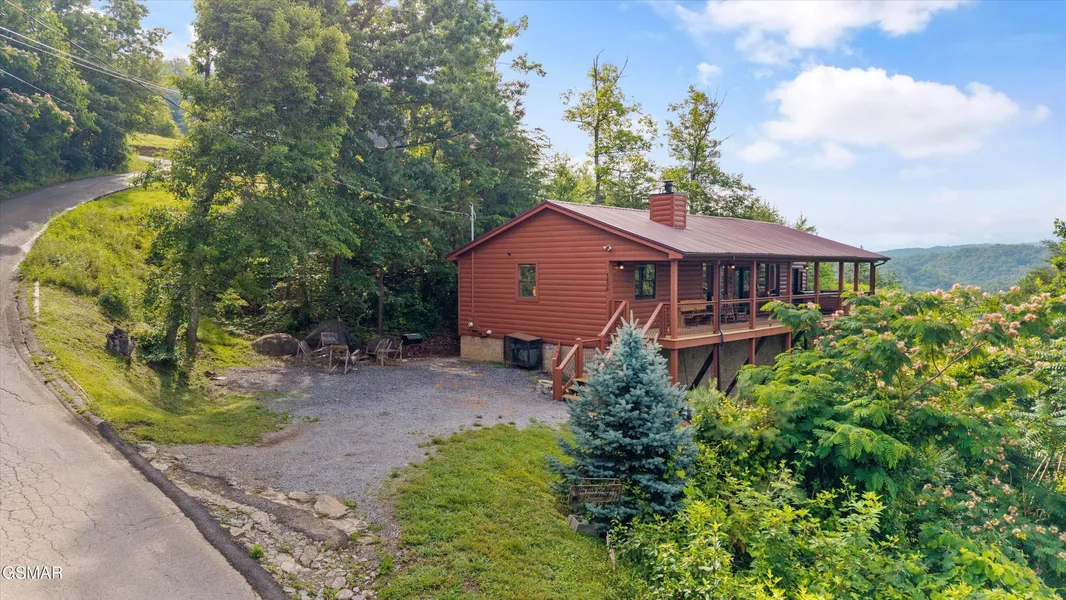 Updated Cabin with mountain views! 2 Master bedrooms with en-suite bathrooms and an additional half bath. This has been a hard one to schedule for showings due to the busy rental activity, This updated cabin shows owner pride with all the current updates. 2025 updates include new decking, whole house has been sealed and stained, updated 2nd bath, water filtration system, electric fireplace. Previous updates include new master bath and granite countertops. A quick 10 minute drive to Dollywood and enjoy the view of Dollywood fireworks without leaving your home, you can see them from the deck. Good rental income it is currently self managed on VRBO only.