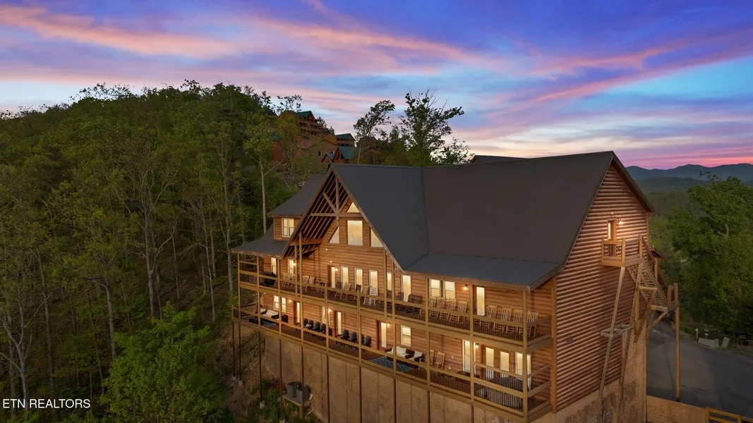 This prolific lodge has a strong track record and is continuing to knock it out of the park! 2023 had $418k gross income, 2024 ended with $372,000 and 2025 is also going to be strong as already there are $300,000 worth of bookings! You will love the views from Smoky Mountain Memories Lodge! at the Top of Desirable Resort, Sherwood Forest, just minutes from all the action packed Pigeon Forge! Anchored by a large pool, twelve bedrooms, 14 baths in this upscale open floor plan lodge! The Best of the Best no doubt when it comes to amenities and spacious memorable amenities! The main floor of the cabin has 5 bedrooms, 6 bathrooms, a huge dining room, kitchen anchored with a massive stone fireplace just around from the open living room with walls of glass from top to bottom! Families, reunions, retreats of all kinds will enjoy the beautiful kitchen with granite countertops, two of all major appliances, and seating for a total of 51 at the 5 log dining tables. It is totally furnished with all the cookware and tableware. Step outside to the deck and take in the incredible mountain air as you soak all your worries away in the hot tub! The Upper Level is open to below and give guests the dramatic loft feeling many come to the Smokies for! Upstairs features an open gaming loft, 4 bedrooms, and 4 bathrooms. Your guests can shoot some pool or match up on the shuffle board. Or hang out in the arcade. The Lower Level provides the space for entertainment and fellowship of these large groups! Air hockey and two driving arcade games facilitate friendly competition. The theater room will have quests thinking they drove into town to watch a movie in the local theater. You will also find a washer & dryer on this level for added convenience. As if the game room and theater room are not enough to keep guests busy, enjoy the private indoor pool every season of the year. The pool room also offers a jack-n-jill (tub/shower) bathroom that conveniently connects to the game room. Guests can wind down from all the excitement in one of the 3 bedrooms on this level. There is also a lower level deck with jaw dropping views of sunsets, where a 2nd hot tub lets guests making lasting memories and plan their next vacation back to this amazing lodge. There are a handful of 12 bedrooms in the Great Smoky Mountains but none have a more dramatic spacious floor plan and are outfitted with so much entertainment! Definitely a winning investment lodge!