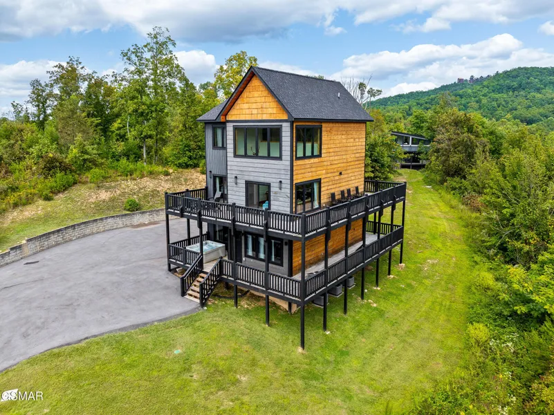 3 Bedroom Cabin with Game Room, Theater, Mountain Views and Prime Location Near Dollywood Projections of $120,000+! This well-maintained 3 bedroom, 3 bath cabin is located just minutes from Dollywood and the Pigeon Forge Parkway, offering convenient access to local attractions, shopping, and dining. Built in recent years, the home features a spacious layout that works well as a personal retreat or short-term rental. The open concept main living area includes vaulted ceilings, large windows for natural light, and warm wood finishes throughout. The cabin includes a dedicated game room with a pool table and arcade games, as well as a private theater room with tiered seating and surround sound. Outside, a covered deck offers a hot tub and views of the surrounding mountains. The kitchen is equipped with modern appliances and generous counter space, and the home comes fully furnished. Each of the three bedrooms is comfortably sized, with three full bathrooms to accommodate multiple guests or family members. The large yard provides outdoor space not often found in this area, and there is plenty of parking available for multiple vehicles. This property combines a desirable location with functional amenities, making it suitable for a variety of uses including a second home or rental investment.