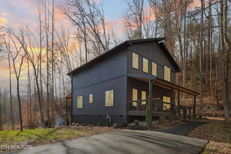 When you think of a cabin in the Smoky Mountains, do you think of a bunch of cabins sitting side by side so close to each other, you could reach out the window and knock on the cabin next door OR do you think of a secluded cabin nestled on an acre lot offering privacy in a peaceful setting? If the 2nd option sounds more inviting, let me introduce you to this ultra luxurious, brand new cabin situated on a secluded acre lot with mature shade trees. Boasting loads of upgrades including HardieBoard fiber cement siding and Anderson windows, this one is not your typical builder spec cabin, but more of a custom build. The full length covered front and back porches are the ideal setting for enjoying the peaceful sounds of nature and the whisper of a spring-fed creek in the distance. Unwind and spend your evening with friends and family enjoying smores in the secluded fire pit area. The outside l...