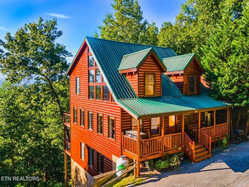 This 5-star turnkey cabin sleeps 16, hosts dining space for 14, and 2 separate living areas. Gorgeous views of Mt. LeConte from two back decks. 2 King Suites, a chef's kitchen, hot tub, pool table, TV room, foosball, and 1,200-game Multicade allow you to kick back and relax. Only 15 minutes from Pigeon Forge/Dollywood, enjoy stunning mountain views with paved, easy roads. Open parking accommodates several vehicles-so parking is never an issue. Fully renovated, this cabin features all new furniture, kitchen appliances, mattresses, bedding, kitchenware, and two new HVACs. Main level offers an open-concept living room/ Queen sleeper sofa/full kitchen with vintage red Big Chill refrigerator. King Suite includes double-sided gas fireplace/jacuzzi/full bath. Upstairs is King Suite, Queen sleeper sofa/dedicated workspace/pool table/full-sized washer/dryer/full bath. Lower level offers a 2nd liv...
