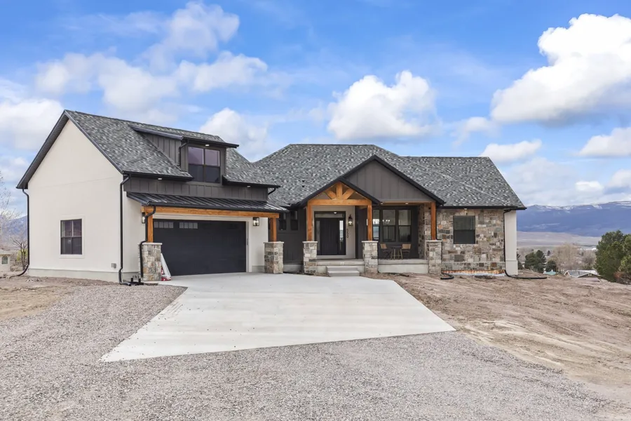 Luxury Living with Stunning Views! Nestled near the mouth of Monroe Canyon, this exceptional 4-bedroom, 3.5-bathroom custom home offers breathtaking mountain and valley views on .73 acres. With 3,227 finished sq. ft. and an additional 2,885 sq. ft. unfinished basement, this home is designed for both elegance and endless possibilities. Inside, you'll find a high-end kitchen with a butler's pantry, vaulted ceilings, and a cozy fireplace, creating the perfect atmosphere for both everyday living and entertaining. The walk-out basement provides incredible potential, including a one-of-a-kind trampoline room-a fun and exciting feature for all ages! Outside, enjoy a spacious deck, ideal for soaking in the panoramic views. The property also includes a large garage with ample storage. Don't miss your chance to own this unique retreat-schedule your private tour today!