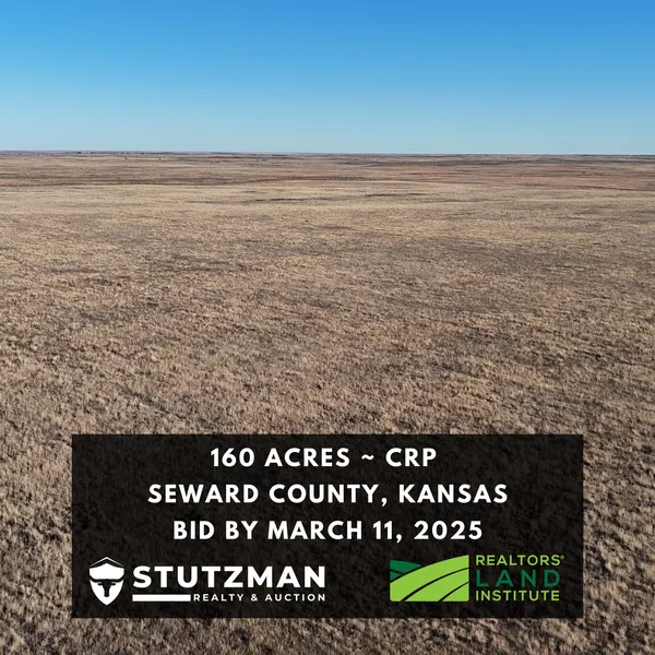 Contact Stutzman Realty & Auction to learn more about this 160 acres of land located in Seward County, KS. Situated east of Liberal, - this tract is currently enrolled in CRP and is available by Private Auction - Bid by Telephone Bid by March 11, 2025.