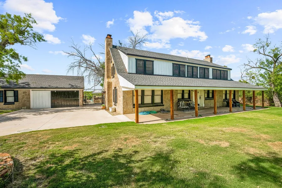 Welcome to your dream home, this stunning 2-story residence boasts about 3,000 sqft of luxurious living space, situated on an expansive 8.27 acres. As you step inside, you'll be greeted by an open & inviting floor plan, featuring spacious living areas filled with natural light, character & charm. The main floor offers a modern kitchen with a farmhouse flare, offering high-end appliances, tons of crisp white cabinets & granite countertops. A cozy living room with a wood burning fireplace & a dining area perfect for the entire family. Upstairs, you'll find a generously sized family room & two bedrooms both with a walk-in closet. Step outside & enjoy the beautifully landscaped yard, a built-in grill perfect for hosting outdoor gatherings or enjoying quiet evenings. Dive into the pool or layout & enjoy the summer sun! Also includes a pool house with attached garage & a 1.5-acre tank stocked ...