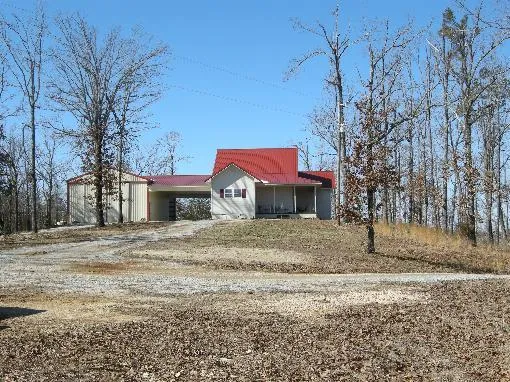 NEWER HOME ON 19.71 ACRES This home is less than 2 years old and was designed with retirement in mind. There is an attached 30x40 storage building that has 16 ft. side walls and big sliding doors. This is the perfect place if you have an RV, and there would still be a lot of room for other storage. The area between the shop and home has a covered breezeway making a good parking garage. The home features 2 bedrooms upstairs, a large master with bath and walk-in closet, and one in the basement area with a bath making a total of 2036 square feet of living space. This is a well kept home with wood floors in the living room. The living room and the kitchen are open to each other and the numerous windows give the home a very light and airy feel. You can sit on the covered front porch and see a marvelous view of the Strawberry valley, or watch deer and turkey on your own property. The home is located in the Evening Shade, Arkansas area and has frontage on a black-top county road. Priced to sell at the firm price of $195,000