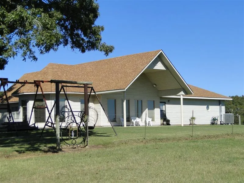 Beautiful secluded home and 60 acres is located in northern Arkansas. You enter the property at the county road frontage and wind through a tree shaded drive back to the house. Then you break out into a level meadow that is manicured like a lawn. You can not see this house from the road; it is as private as most big places would be. The home is like new, and does have new oak custom made cabinets in the kitchen. The spacious master bedroom is 22x17.5 and has a master bath with a walk-in shower, whirlpool tub and big walk-in closet. The other bedroom has a master bath as well. The living room and kitchen is one big room with a vaulted ceiling. The formal dining room is surrounded by glass and brings the outdoors inside. The home is a roomy 2,629 square feet and has a double carport. There is a 30x30 craft or hobby room that could easily be converted into living quarters for an extra adult. It is heated and plumbed. For the farm, there is a 40x60 workshop with 16 foot side walls and three 12x14 foot overhead doors, an awning to hold tractors and equipment and a side shed on the back for hay storage. There is an outstanding set of working pens if you want to run cattle. There is a Powder River squeeze chute, a set of heavy WW panels with a tub sweep. This setup is designed to let cattle out in different pastures and is designed where one man can run the whole working operation. This is the perfect retirement place for seclusion and livestock and is in pristine condition. Priced at $395,000