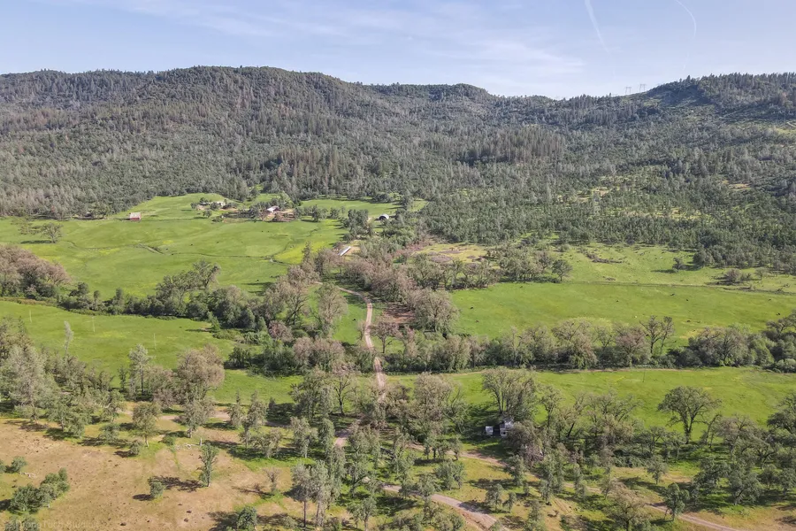 The farmsteads overlook the lush green pastures and are accessed by a gravel road with landscaping around the residences. The farmsteads are maintained and contain a set of corrals, two residences with 2 bedrooms and 2 bathrooms each,with multiple agricultural support buildings. The closest community to the property is Whitmore which is located north of the ranch. The town of Palo Cedro is located 22 miles to the west and it is 30 miles to the Redding airport.