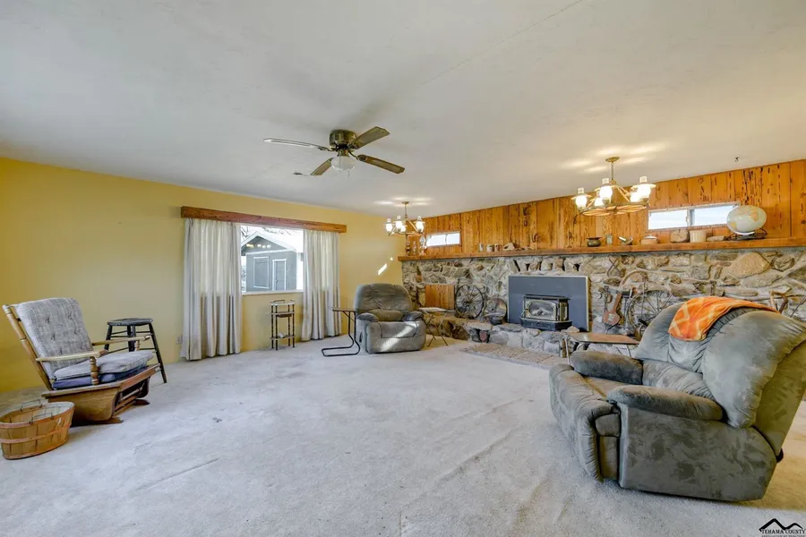 Absolutely Gorgeous Home with a 360 View of Lassen Mountain Ranges. The home sits on a lovely 10 Acre with room for farm animals and that ranch lifestyle! There is also a very nice seasonal pond on the property. This home is minutes from the Northern CA VA Cemetery. The living room opens into a unique rock wall with a wood stove to keep your family nice and toasty. If you're looking to upgrade please hurry, this one won't last!