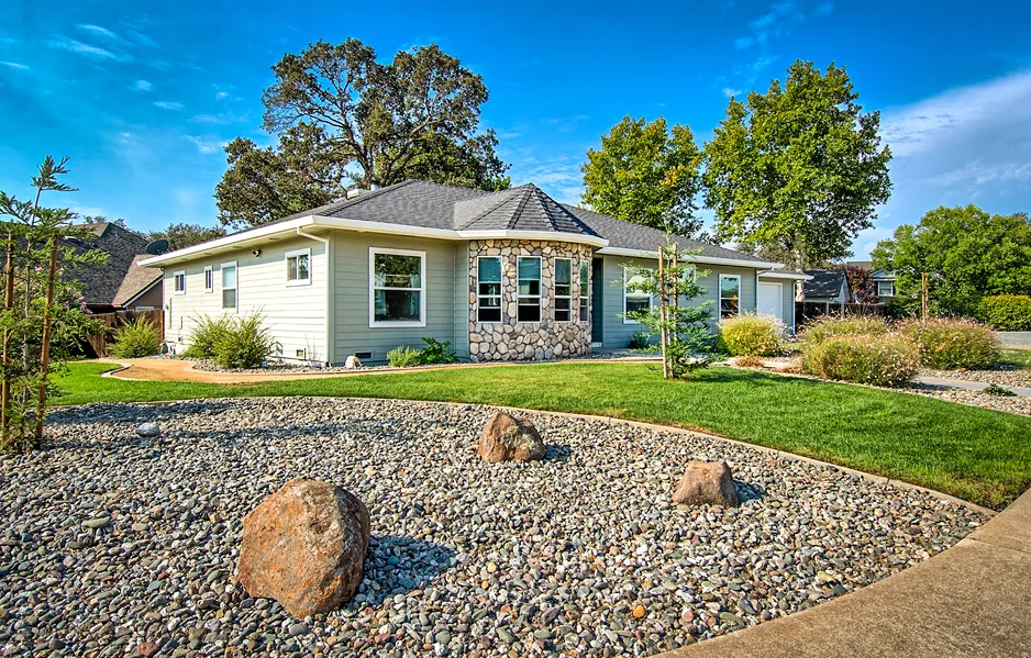 Stunning single-level home that offers a custom-designed split floor plan with grand rooms and vaulted ceilings, central vacuum, indoor laundry, hardwood floors, 4 bedrooms plus an office, 2.5 baths, and an elegant dining room with bow windows. Enjoy the open floor plan that features a beautiful kitchen with an island, a garden window, and a walk-in pantry. You will also enjoy the cozy fireplace in the living room and the seamless indoor/outdoor living and entertaining with the sliding glass door to the covered patio with views of the mature trees and the park-like backyard. The master suite includes a private sliding door to the covered patio area, a large sitting room that is adjacent to the bathroom that features double sinks, a jetted tub, and a separate shower. Also includes an oversize 2-car garage, storage shed, RV parking for all the toys, and near the end of the cul-de-sac.