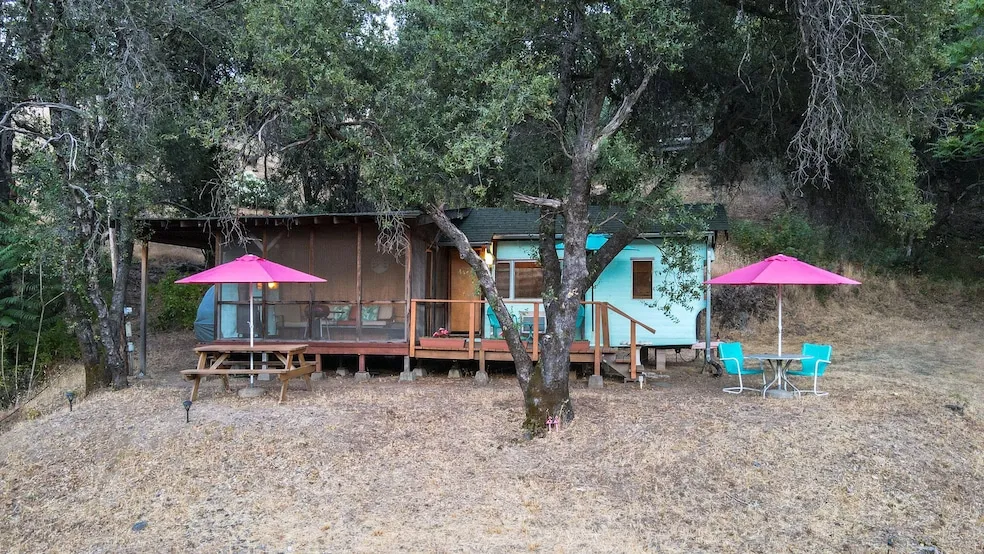 Move in ready, fully functional mobile home in Jones Valley community with permitted septic, power & community water. This is a multi-parcel property within a two-minute drive to Shasta Lake recreation area and a 1-minute walk to the local tavern and restaurant makes this property an ideal year-round home, summer fishing camp or weekend get-away. The main residence is a restored 1957 Custom 40' trailer with a stick-built ramada, a cozy screened in porch and open sun deck. A beautiful hillside view spot with breathtaking views of Bear Mountain. This was long term owned property for three generations as a vacation destination property. And now if can be yours. The lower parcels nicknamed ''Shady Oaks'' is easily accessible down some stairs from the main home. With nearly 1 acre of flat usable land with the seasonal Dry Creek running through it. It has additional access through a driveway from the north side of Ranger Ct. There are many fruit & nut trees like pecan, fig, Plum, nestle among the mature oaks and pine trees, as well as black berries and wild grapes ripe for the picking. Dotted throughout the property are lounging areas, picnic tables, cement tables, benches, bird baths and solar lighting. There is a tiki hut too. And a private retreat area known as pirate's cove. There is a second vintage trailer, a 1957 Oasis that needs some restoration work but would make a great additional overnight quarter for family or friends. Being close to both, Silverthorn and Jones Valley resorts. Possibilities include boat / RV storage, Van life space rentals, large space need, short term rentals and Family reunion space.