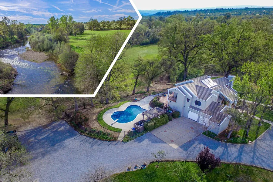 Beautiful 16+- acres on Cow Creek in Millville, CA. This park-like waterfront setting and custom home are tailor made for country living at its finest, yet close to all the amenities. The 3,088 sq. ft. home is beautifully crafted and well appointed. High vaulted ceilings of western red cedar and many windows provide beautiful light and offer views of the mature landscaping and towering oaks surrounding the home. The 4 bed, 4 bath home has separate living and family rooms, a well appointed kitchen, and a large formal dining room. The 2nd story primary bedroom contains an en suite bathroom with dual sinks and walk in shower, and provides gorgeous views and natural light from its many windows. The bedroom opens to a balcony providing the perfect spot to enjoy the morning coffee while watching deer roam the stream-side meadow below. The first floor bedroom would be an ideal guest room with i...