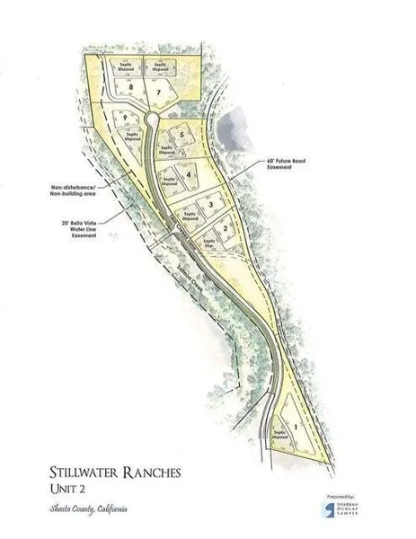 This is the only lot with a septic system already in. Phase 2 of Stillwater Ranches. Home minimum of 2500 sq ft, underground power, Bella Vista Water PG&E electricity. Custom home community with country feel, but close to town.