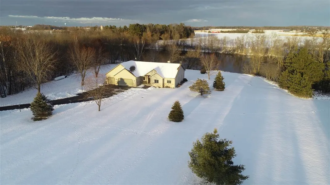 Enjoy the peace and serenity from this immaculate 3 bedroom, 3 1/2 bath home on 300 ft of Wolf River frontage! Walk into a welcoming foyer leading to an open concept great room with wood burning fireplace, custom kitchen and dining area with patio doors to a spacious deck. Also featuring 1st floor laundry with 1/2 bath, and master suite with walk-in closet. Lower level features a walk-out lower level with family room, wet bar area, full bath and ample storage. In-ground sprinkling system, central vacuum. Attached 3 stall finished garage is piped for gas heat.