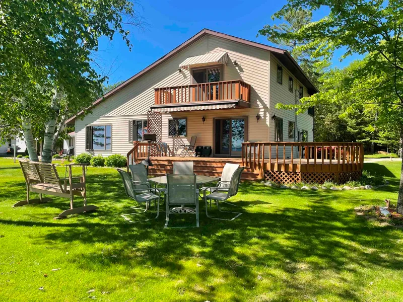 Gorgeous 100 ft of sandy frontage on the north shore of Shawano Lake is where you will find this quality built, over 2,500 sq ft home, featuring large great room, kitchen/dining patio door to large deck, living room with vaulted ceiling and gas fireplace, sitting area at top of stairway, 3 bedrooms, 3 full baths, master suite, large 3-season bonus room, 3 stall partially heated garage with attic storage.