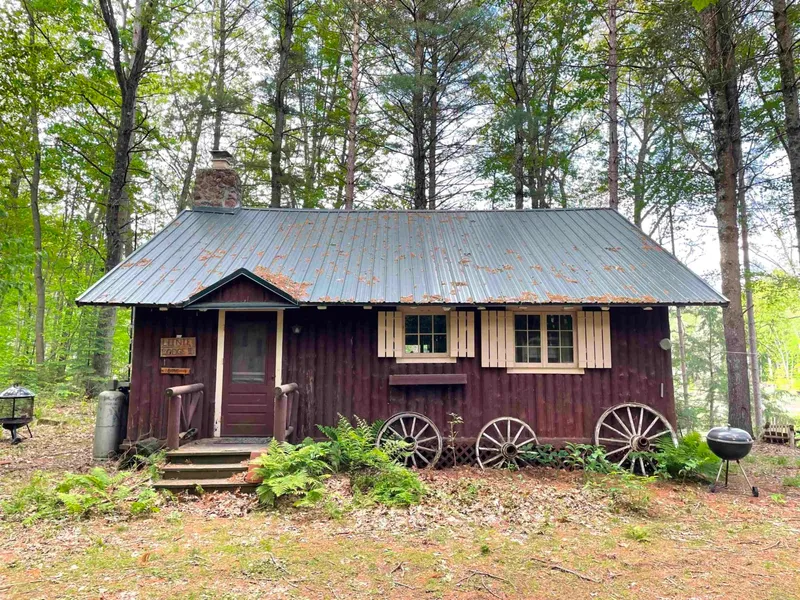 Don't miss seeing this charming storybook cottage on peaceful, no wake, no gas motor Koonz Lake on .8 acre with 167' of water frontage. This 3-season, 2 bedroom, 1 bath, log cottage features kitchen with breakfast bar, rustic stone to ceiling fireplace, lakeside enclosed and finished porch. There is an LP gas wall heater, a forced air electric furnace and wood burning fireplace. LP is two 100 lbs tanks. Cottage sits on concrete pillars and has a partial crawl space with hot water heater, well pump and electrical panel, 200 amp service. New well drilled in 2011 and new metal roof in 2019.