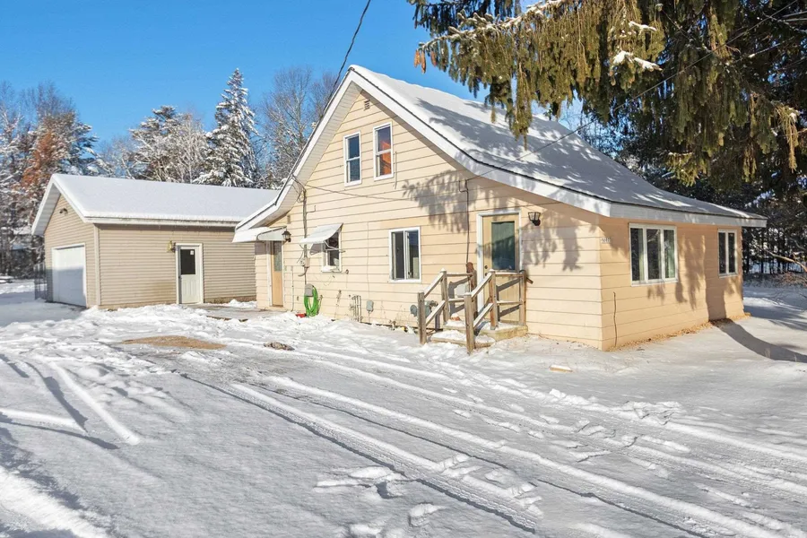 Adorable 3 bedroom 1 bath home on a generous sized lot just outside the city limits! Large 2 stall detached garage built in 2011 with room for both vehicles AND toys! Additional 14x8 shed for extra lawn equipment storage! Central air installed in 2022 and updated electrical! Minutes from Shawano Lake, ATV & snowmobile trails, downtown Shawano, local eateries and more! Location, Location, Location!