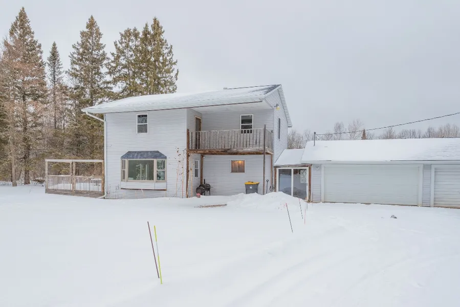 This quaint 2 bed, 2 bath home sits on just under an acre in the town of Hewitt and is completely move in ready!!The farmhouse style kitchen opens up into an open concept living/dining room space that is large enough to fit the whole family. Open the patio door for more party room out on the attached deck! The laundry room is situated off of the living room (washer and dryer do not stay) along with a walk-in pantry. The main floor bathroom has also been completely renovated (2023). Upstairs, the spacious (18.5’x17’) main bedroom features a 6’x6’ walk-in closet and a private balcony – the perfect place to enjoy your morning coffee! An additional bedroom and bathroom with walk-in shower are located on the second level as well. Work from home? The upper level features a great home office space! This office space can also be easily converted into a third bedroom! Carpeting has been replaced throughout the whole house, new drywall has been hung in the upstairs bathroom and hallway, and the whole house has been freshly painted. ooking for extra storage space, a workshop, or room for additional vehicles? The attached 4 car garage offers endless possibilities! The garage was built 12 years ago, is insulated and has the potential to be heated via a wood stove. The raised planters in the backyard are perfect for the avid gardener. Additional updates include: water heater (2018), brand new furnace motor, new well pump and pitless adapter (2020), updated electrical and plumbing throughout the whole house, brand new sump pump motors on both sumps, and the roof was replaced in 2017. Schedule a showing today to secure your own slice of country living!