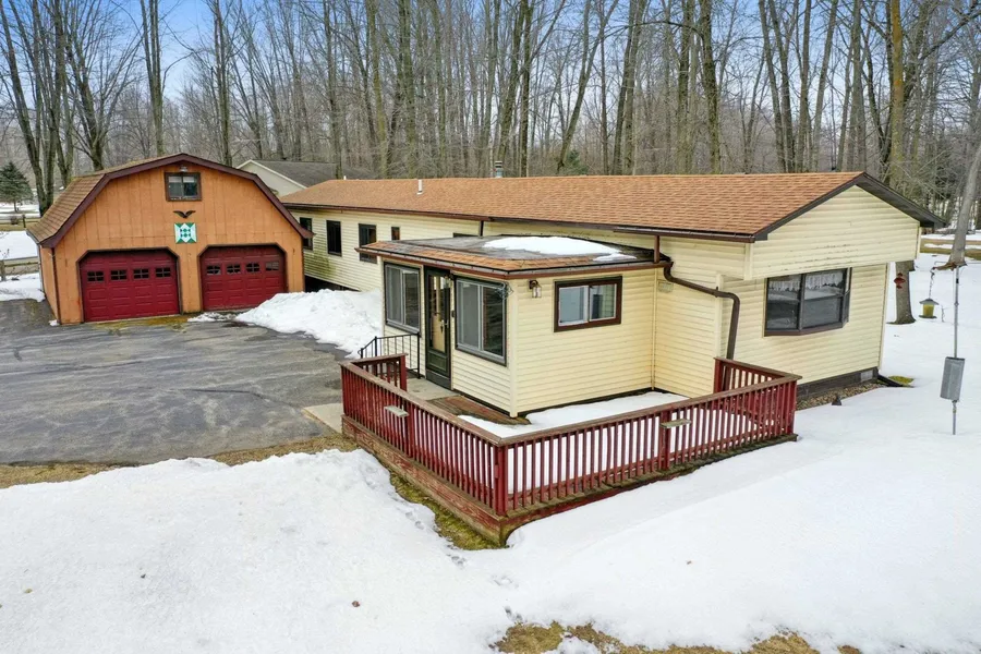 Cozy and charming, this 2 bedroom single wide home is the perfect retreat for anyone seeking comfort and affordability. The primary bedroom features an en-suite while the second bedroom offers plenty of space for rest and relaxation and an extra door for the possibility of converting into 2 bedrooms. Two stall detached garage with loft upstairs perfect for a playroom, extra storage or playing cards on the weekends. Outside, the home features a deck that is perfect for entertaining or just relaxing in the sun. Whether you're starting a family, downsizing or searching for that summer cottage near Shawano Lake this home is the one for you! Don't wait, schedule your showing today!