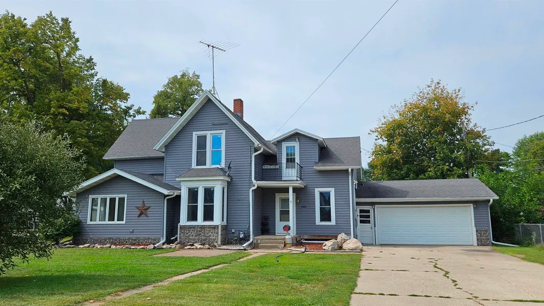 Welcoming home with lots of curb appeal. Come in and create your dream space. The outside is done. You bring ideas for the interior. The pieces are all here: country kitchen, living room with inviting window seat, French doors to the primary bedroom, laundry and loads of natural light. The home used to be a duplex and the upstairs has a large landing, bedroom, office and large storage closet. Both levels have full bathrooms. The upper level also has a second kitchen which could be used to expand the bath for a special retreat. The home has separate furnaces for the upper and main levels. The basement is dry for storage. The attached garage has room for vehicles and a workshop or toys. Pick fruit from your cherry, plum, apple, pear, and peach trees. Enjoy short walks to parks & downtown!
