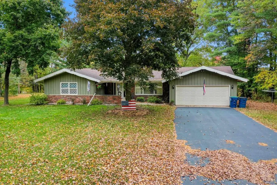 Enjoy the mighty Wolf River from this custom built ranch with 115 feet of river frontage and over 1,700 sq ft of living space, featuring kitchen with maple cabinets, snack bar and pantry. Enjoy the views from the great room with fireplace, with patio door leading to the spacious 3 seasons room. Also, 2 generous sized bedrooms with ample closets and storage, 2 full baths, 1st floor laundry, full basement, 2 stall finished garage, all situated on a nicely wooded lot.