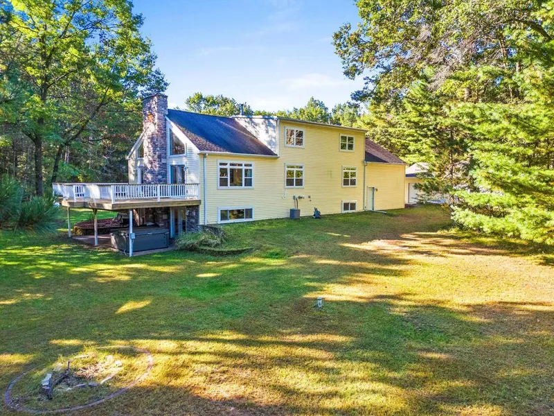 Nature lovers will find all they need in this spacious 4 bedroom, 3 bath home. Located just minutes from several area lakes and tucked away on 2.86 wooded acres, this home has a lot to offer. The main living area offers an updated kitchen with granite countertops, oak cabinets and stainless steel appliances, vaulted ceiling, fireplace in the living room and doors out to the large deck overlooking the yard and woods. Primary suite with walk in closet and jet tub in the bath. The walkout lower level has a rec room complete with pool table and pellet stove, bedroom, full bath and a den/office area. Need more space? The upper level offers the ability to add a mother in law suite or additional bedrooms. 2 large garages, 2 composite decks and a covered patio with hot tub.