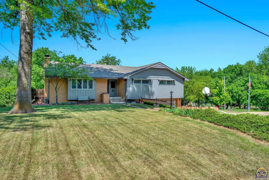 This type of park-like property is not seen often! Located in the Topeka Seaman School District on a paved road in a well established neighborhood is this meticulously cared for raised ranch with 4 bedrooms/3 bathrooms on just over 6 acres! On the main level there are 4 beds, 2 fully remodeled bathrooms, the recently remodeled kitchen with granite and stainless steel appliances, dining and living rooms with beautiful hardwood floors and tile. The main level is complete with a covered redwood deck that boasts a natural gas grill and a view of the property. The full walkout basement has a ventless gas fireplace, full bathroom, laundry room, family room with a wet bar, and space for an office/den. Walk out of the basement door into your own private oasis with an inground pool, TV set ups, a new pergola, hot tub hook ups, and so much more! Looking past the pool you'll see the first of 3 outb...