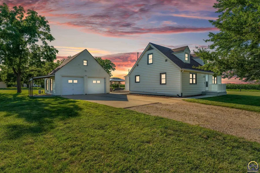 Welcome to this completely remodeled 4 bed, 2 bath, 1.5 story home in Tecumseh with a serene backdrop of greenery! This property has been meticulously cared for and extensively upgraded, offering a blend of charm and functionality. The home features new plumbing and electrical systems, ensuring peace of mind and efficiency. A 50-year high impact roof provides durability and longevity. The heart of the home boasts a complete kitchen remodel, highlighted by sleek granite countertops and breakfast bar and dining area. Both bathrooms have been beautifully remodeled with all-new fixtures and finishes. Main floor laundry in the enclosed porch area along with access to the storm shelter. Newer HVAC, water heater, and double pane windows add to the home's efficiency. Outside, the backyard includes a composite deck and a covered patio area with all new concrete. The 26x24 detached garage is equip...