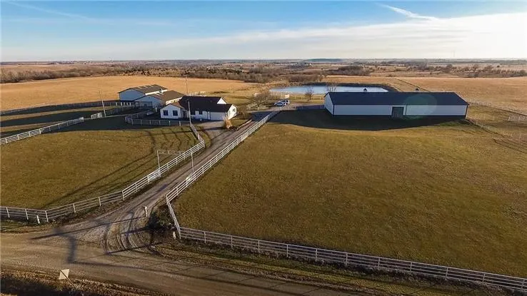 MOTIVATED SELLER! 73 acre horse property with stocked pond sits on a high point in Shawnee County, just north of Topeka! Views for miles from this rolling terrain! Updated ranch home has wide open floor plan, vaulted ceilings, breakfast bar, granite counters, mud room, full basement & large, covered porch. All Morton outbuildings include: indoor riding arena, 7 stall heated barn, equipment storage, garage & pipe fencing. Stalls have auto waterers, swing-out feeders, dutch doors that open to pastures.