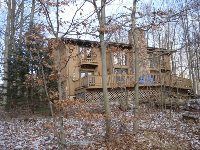 Spacious 4 bedroom Contemporary home on 1.2 acre wooded lot. Massive floor-to ceiling stone fireplace & skylights, Large first floor family room & formal dining room for entertaining. 3.5 bath's, 1st floor master suite w/whirlpool tub. Finished lower level rec room w/bar, grill & full bath. Central air, 2.5 car garage. Fantastic views from 4 decks. Walk to Lake Michigan & State Park. Short access to all public golf courses.