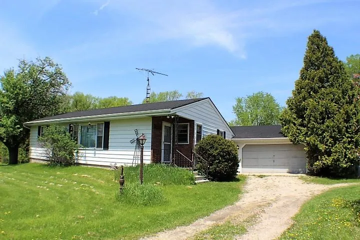 Ranch home on 3.6 acres. This 2 bedroom home can easily be converted back to 3 bedroom. Enjoy the attached 2-3 car garage with workshop plus an additional detached 1 car garage and storage shed. The Onion River is the back border of this property.