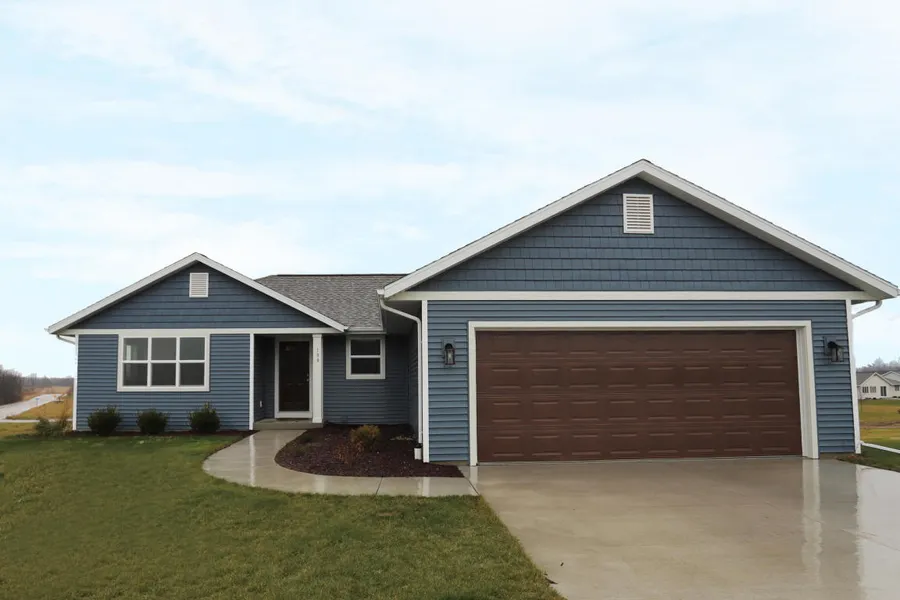Beautiful custom built ranch home with exposed lower level, built in 2019! Nice and bright open concept living with upgraded finishes that have been tastefully chosen. Kitchen has white cabinets and a large island with quartz countertop and walk in pantry. The cathedral ceilings opens this space to living room and dining room, great for entertaining. Split bedroom design, master bedroom has large walk-in closet and private bath. 2 other bedrooms on main floor and a full bath between them. Exposed lower level has a large family room with a wet bar, 4th bedroom and full bath. Enjoy the outdoors on either your upper level deck with view of some ponds or on the private lower patio. Convenient dog door and dog run for when you are at work. Enjoy living in the new Auburn Hills Subdivision.