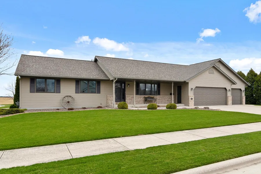 Super clean-well maintained 4-bedroom, 2.5 bath, 3-car garage Ranch in Oostburg! Great curb appeal! Welcoming front porch, enter a large living room w/vaulted ceilings + great natural light. Kitchen is huge w/good counter space, pantry, desk + dining area Family room is on the main level. Laundry on main or lower, Master bedroom w/private vanity + walk-in closet. Dual entry full bath. Bedrooms are good sized w/nice natural light. Great Rec Room with gas Fireplace + full sized windows. Bedroom on lower level also has full sized windows. Immaculate workshop + full bath also on lower. 2 X 6 Construction, 18' garage door, garden shed has concrete floor. There is a 2nd stairway to basement from garage. New roof in 2021! Beautiful yard, landscaping and mature trees all on a quiet side street.