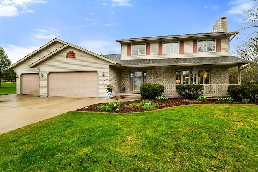 Welcome home! This 2,364 sq ft quality-built custom home on end of a cul-du-sac, features a 2-story front entry w/a grand staircase + abundant natural light. The spacious living room offers a cozy gas fireplace + flows into the formal dining room, open kitchen + casual dining area w/ patio door access to the back deck. In addition to the 1/2 bath, the main-floor has the primary bedroom including a WIC and ensuite bath w/ dual sinks, whirlpool tub, and showerplus peaceful backyard views. Upstairs are 3 additional bedrooms, all w/ WICs, and a full bath. Main-floor laundry. Full basement ready to finish to your needs, radon mitigation. 3.5-car insulated garage w/ floor drain, RV/boat parking pad w/ 30amp service. Landscaped 1.58-acre lot w/ decorative curb edging in River Woods Subdivision.