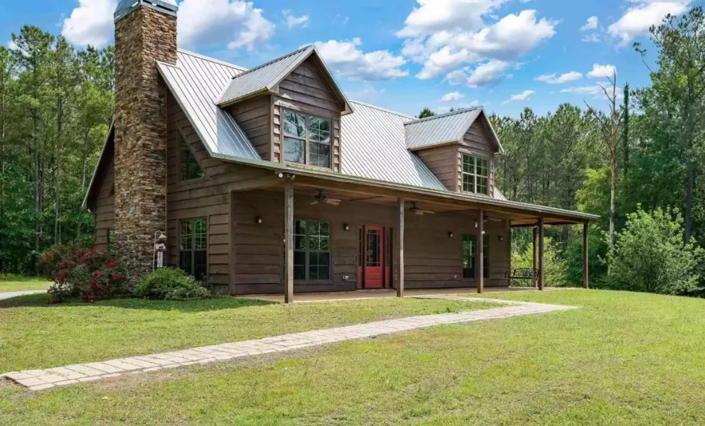 This log cabin style home is nestled in a mix of pine and hardwood timber. It features 3 bedrooms and 2.5 baths, a wood burning fireplace, cathedral ceilings, and a spacious master suite. It sits on 60 acres and there is a trail system and picturesque pond.