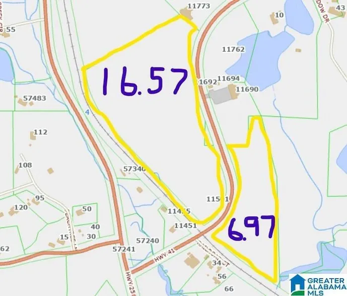 Research Parcel InformationFrom 280, turn onto Hwy 41 (Dunnavant Valley Rd). At the "T," turn left onto Hwy 25, then right onto N. Hwy 41 which is also CR 101. This parcel, parcel 2, is on the left side and continues to the Freewill Baptist Church.
