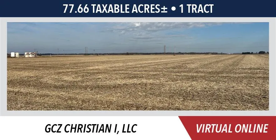 The GCZ Christian I, LLC farm is located approximately 6 miles southwest of Moweaqua, IL or 22 miles southwest of Decatur, IL or 38 miles southeast of Springfield, IL. The property is further described as being located in Section 10, T13N-R1E, Prairieton Township, Christian County, Illinois. The farm contains a total of 77.66 taxable acres, will be sold in 1 tract and represents highly productive Class A soil.