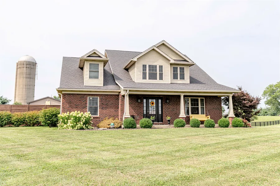 Welcome to 75 Fry Oldsburg Rd - A beautiful, double door covered Entry will lead the way. You'll have to see this custom built home that features 3 bedrooms, 2 full and one half bath. Over 2500 sq ft upstairs with lower level approximately 1220 sq ft. Private 5.58 Acre flat and all usable land. These sellers have made great use of all of it! This will be heaven for some lucky family. You'll have your own pool & small farm to enjoy. Beautiful open floor plan with lots of light. Large Kitchen and eating area that will be the best new hang out room. Large bar area for extra seating and private office space. Wonderful large laundry room with laundry sink and tile floors. Perfect space for walking in from outside. Built-in shelves, bench and cubbies for dropping off all the items you are bringing home. Engineered hardwood throughout main house. Half bath on main level and primary bedroom and bath plus great walk-in closet. You'll begin to see how much storage there is in this home between closets, shelving, landing/loft or hobby area and lower level storage room. It's perfect! 2 additional bedrooms and full bath upstairs. Lower level features Family Rm, exercise room, bar area with wet sink and great play room. To begin outside you'll have to see to enjoy. Besides the patio and covered area, there is an inviting pool and plenty of lazy lying around in the sun decking. Over 5.58 acres of just fun! The outbuilding is 42x60 is anyone's dream for housing all the tractors, toys and even room for another car. Water/electric and concrete floors. You'll notice all the parking area as you drive in. Another fun play barn for all animals. Horses, goats, separate chicken coop fenced and safe. Water & electric too! Another approximate acre fenced. This cool silo is a throw back to an old farm. You can see when the old foundation of that milking room was. You can't miss the beautiful flowers and garden area that adds to all of the amenities. The pictures and video will say it all! A true pleasure to view.