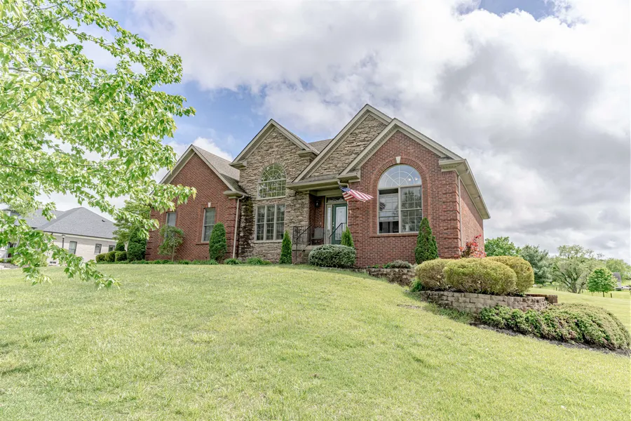 Only 1 mile from I-64 & situated on 1.36 Acres. All brick ranch with over 3900 square feet of finished living space on a full walkout basement offering 5 Bedrooms and 3 Full Baths. Gourmet Kitchen with double oven and gas cooktop. Stainless steel microwave & dishwasher. Cherry stained maple cabinets and granite countertops. Hardwood in the Dining Room and Great Room. Dining Room has 14' ceilings and the rest of the main level has 9' ceilings. The Primary Bedroom and Bath has a double bowl vanity, separate shower, whirlpool tub and spacious closet. The walkout basement has a Recreation Area, 2 bedrooms, Full Bath and a utility garage for your mower. You will love your large lot, deck and patio this Summer!