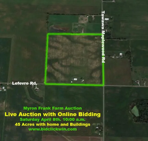 45 Acres of tillable ground with the improvements of an older home and outbuildings. Property has 1483 feet of frontage along Tawawa Maplewood Rd. and 1338 feet of frontage along Lefevre Rd.