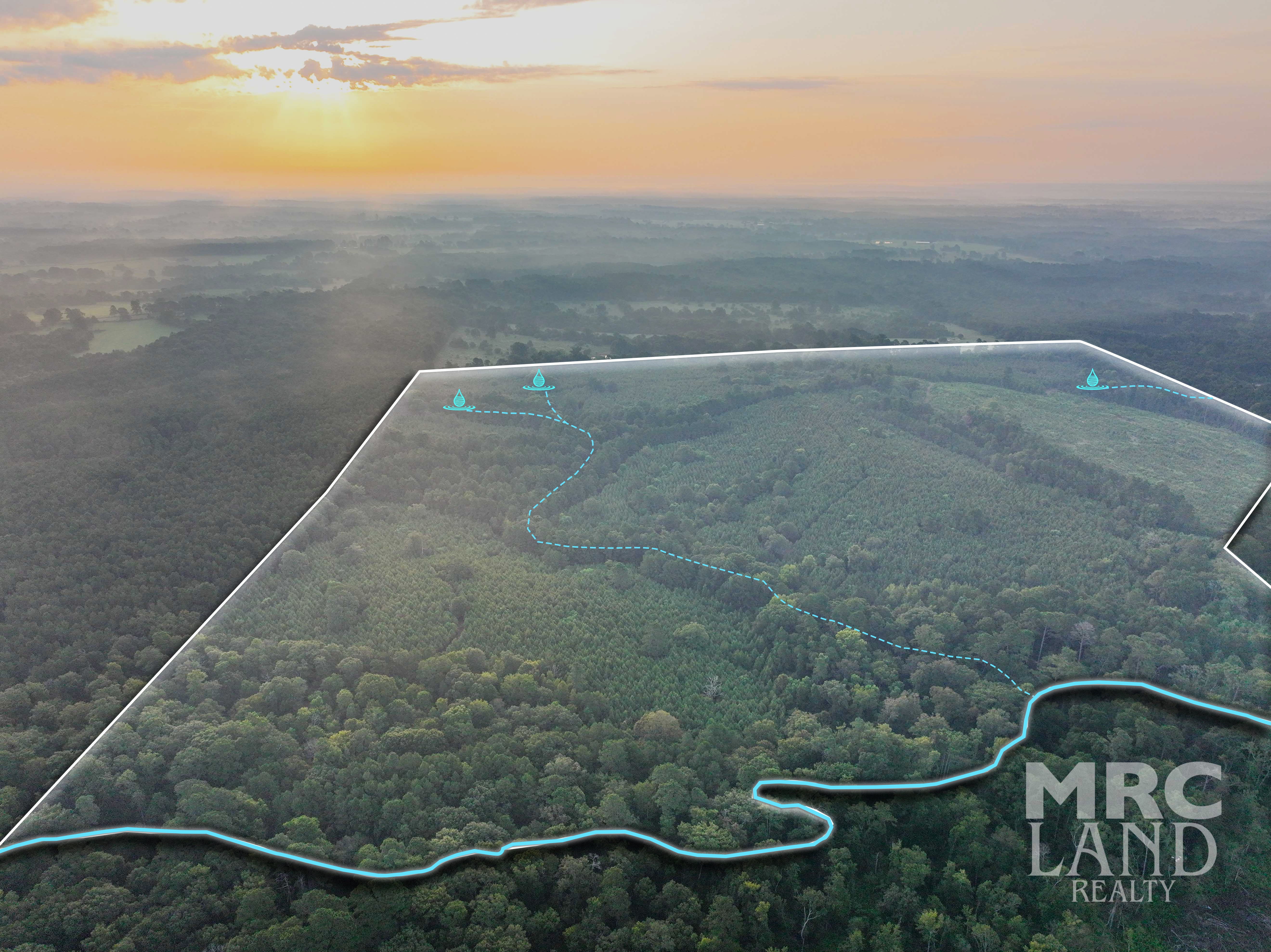Running through the middle of the tract are two natural spring heads, shaded by massive timber and nestled in a natural ravine that seems hand-carved for a spring-fed lake buildout. The topography...