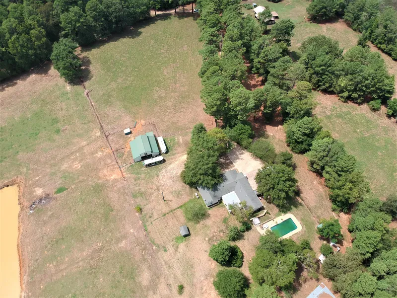 Fenced and ready for Horses, cows, or other livestock. This 14.26 acre tract is perfect for anyone seeking the quiet country living lifestyle. Very nice horse barn with storage and stalls, and also has a wash rack. This property has two water wells, several outbuildings as well as a pool and spa. Spacious brick home with 3 bed 2 baths as well as a custom bar inside the garage for all your entertaining needs.