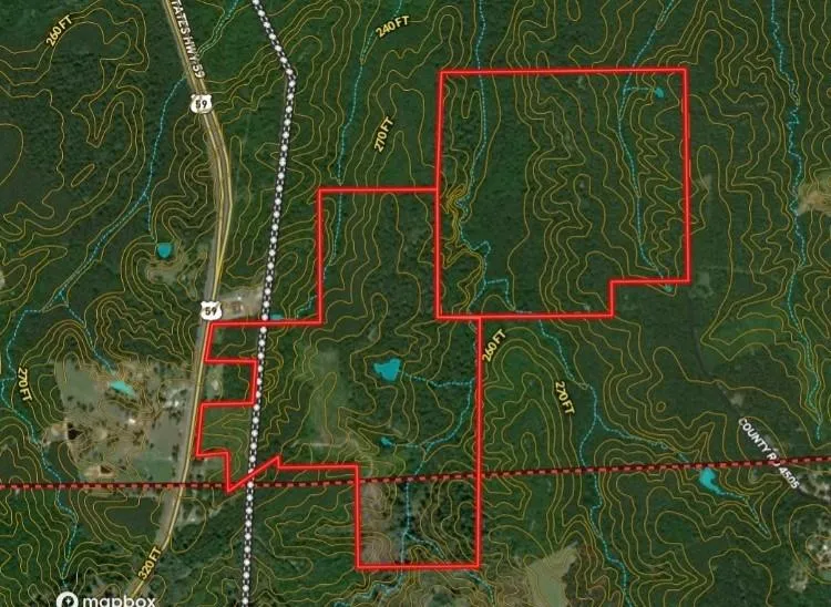 This 326 acres is a hunters dream! The property does have frontage along US HWY 59 with an established 40 easement to access the very southwest corner. Or a very easy gated entrance off of County Road 4505 in the Northeast corner of the property. From the easement on HWY 59 there is a convenient drive into an established camp area to unload gear and smaller utility vehicles. The trails go all over the property and are well groomed and easy to traverse either by foot or with use of a side by side.