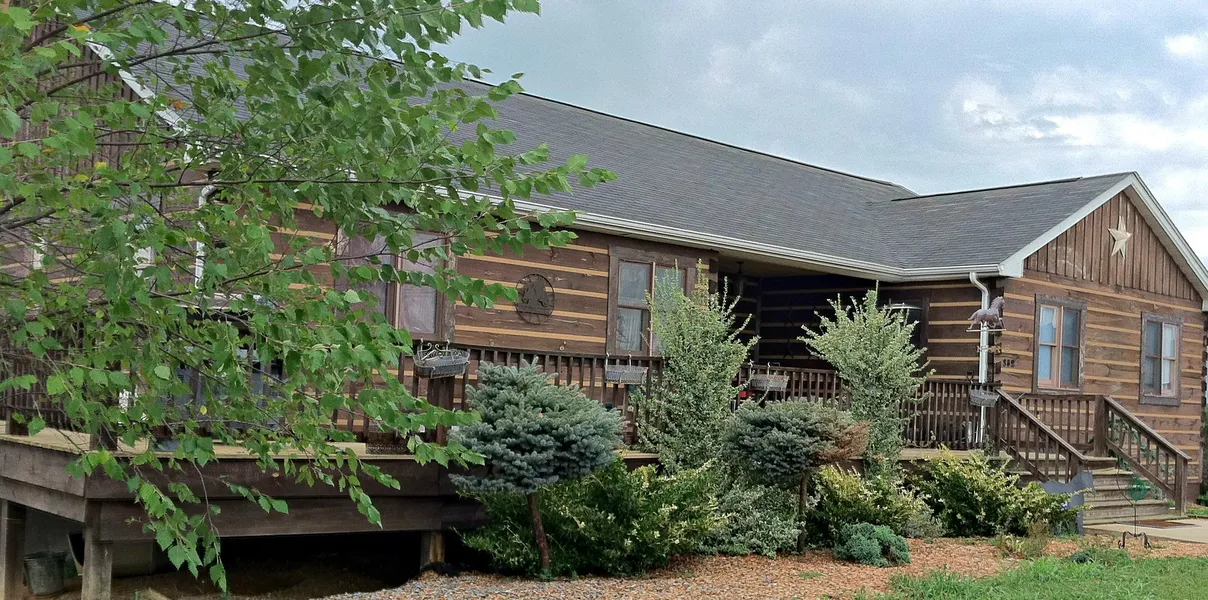 Spacious 4,716sqft Log Home with 5BR, 4BA, plus a Farm home (used as a rental property), 6 stall barn, Cattle barn, Litter Shed, Drive through Equipment Shed all on 44.78 acres surrounded by amazing views of the mountains. Log Home has custom crafted pine cabinets, granite counter tops, hardwood floors, and comes with a Home Warranty. No HOA. This Log Home is A MUST SEE!!!