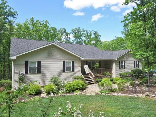 New Listing nestled in a wooded setting with privacy on 6 acres, great open floor plan, spacious master suite with large bath, soaking tub, walk-in closet, large deck and patio area, beautiful yard, full basement designed to entertain! Double built-in bars, entertainment center, his and her bathrooms, 4th bedroom or office, auxiliary wood furnace, large 2 car garage plenty of storage and more.