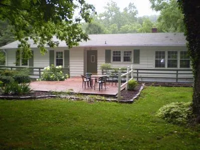 Shenandoah riverfront with park-like setting; beautiful established landscaping and mature trees; private setting with easy sloping bank down to the river; Comfy home with hardwood flooring, fireplace in living room, dining room with lots of natural light, finished walkout rec room in basement, decking, screened porch. Single garage in basement. National Forest access.