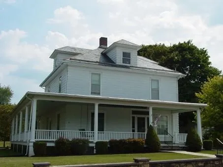 Historic, colonial home! Original hardwood floors throughout, formal dining room w/built-in glass front china cabinet. Entry door carved & opens to sitting room w/raised wood paneled walls & open staircase. Parlor showcases fireplace w/tiling & beveled mirror. Sunporch overlooking large backyard & flower garden. Farmhouse sink, walk-in pantry & original wainscotting. Wraparound porch (swing included). 4th room upstairs with plumbing can easily convert to master bath, bedroom or office. Within walking distance of town park, walking trail, library, shops, store.