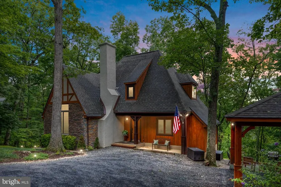 Welcome Home to your very own storybook retreat. This charming natural cedar and stone home nestled in the Bryce Resort community is sure to amaze and delight. Looking for the perfect getaway to relax or enjoy outdoor sports and nature walks? Or, need an idyllic location from which to work that is away from the buzz of DC/MD/VA area yet offers all the comforts of home? This beautifully maintained, updated, and expanded custom home is waiting for you! Manicured landscaping and a welcoming front porch with stained glass window above greets you and guides you through an arched old world? door said to date back 200 years. On the main level find white oak wood floors throughout. Enter the beamed Great Room with vaulted tongue and groove ceiling and discover a stunning floor-to-ceiling stone gas fireplace, and French doors that open to a quiet deck facing the side yard. The chef's kitchen feat...