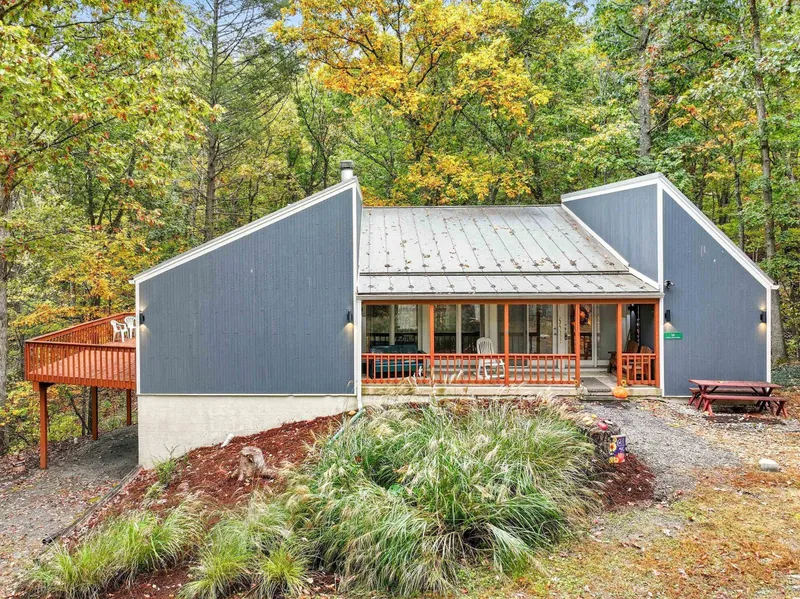 This beautiful contemporary cabin offers the perfect blend of comfort, style, & tranquility. Featuring 3 bedrooms & 2.5 baths, this home sits on 3 parcels totaling 1.168 acres, surrounded by mature trees. Enjoy outdoor living at its best with a large side deck & a covered front porch. Step inside to an open-concept main level showcasing a spacious living room with a double-sided gas fireplace which is open to the dining area & a well-appointed kitchen with ample cabinetry & barstool seating. Just off the kitchen is a convenient laundry room with storage. The primary suite on the main level is a true retreat, complete with the fireplace, plenty of windows to take in the wooded views, a walk-in closet, deck access, & a luxurious ensuite bath featuring a massage shower. The lower level offers a large family room or rec area, two additional bedrooms, a full bath, & two storage rooms for ample space. The basement is walkout level and leads directly to a spacious parking area with plenty of room for guests. This immaculate home has been well maintained, features a new HVAC system, & is truly move-in ready—whether you’re looking for a full-time residence, a weekend getaway, or a short-term rental opportunity.